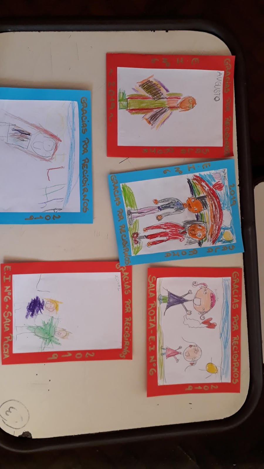 Hoy recibimos a la sala roja junto a su docente Eva. Los chicos y chicas nos hicieron estas tarjetitas en agradecimiento por hacerlos recibido.